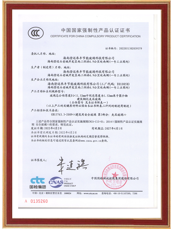 中国国家强制性产品认证证书