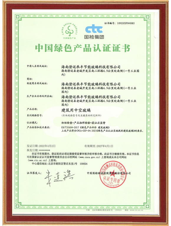 中国绿色产品认证证书